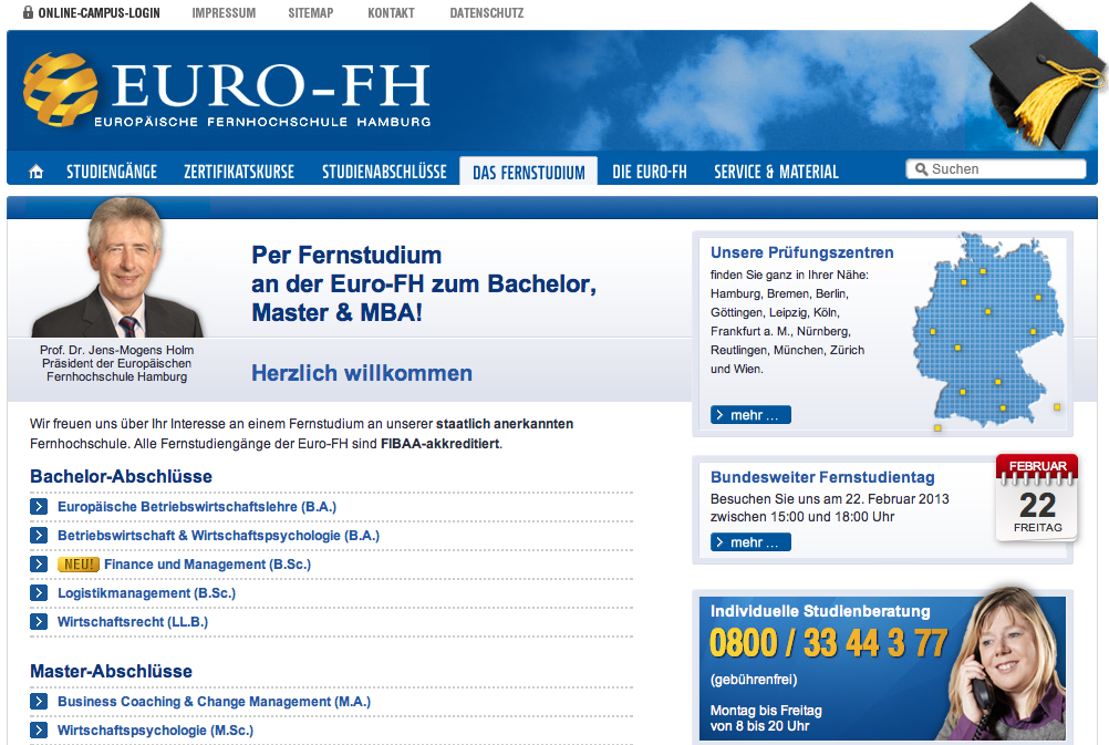 Euro FH Erfahrungen – Ein Vorteil, den die führenden Fernhochschulen gegenüber den kleineren Anbietern haben, ist die Möglichkeit sich vor Beginn des Studiums eine kostenlose Studienbroschüre zum gewünschten Fernlehrgang zuschicken zu lassen. In dieser finden Sie alle wichtigen Informationen zum Studienaufbau selbst, sowie zu den anfallenden Kosten und Präsenzseminaren.
